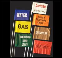 Banderas y banderines de mano, de poste, colgantes, etc. en materiales reflectivos, impermeables y demás para la señalización de zonas de peligro, riesgos o trabajos.